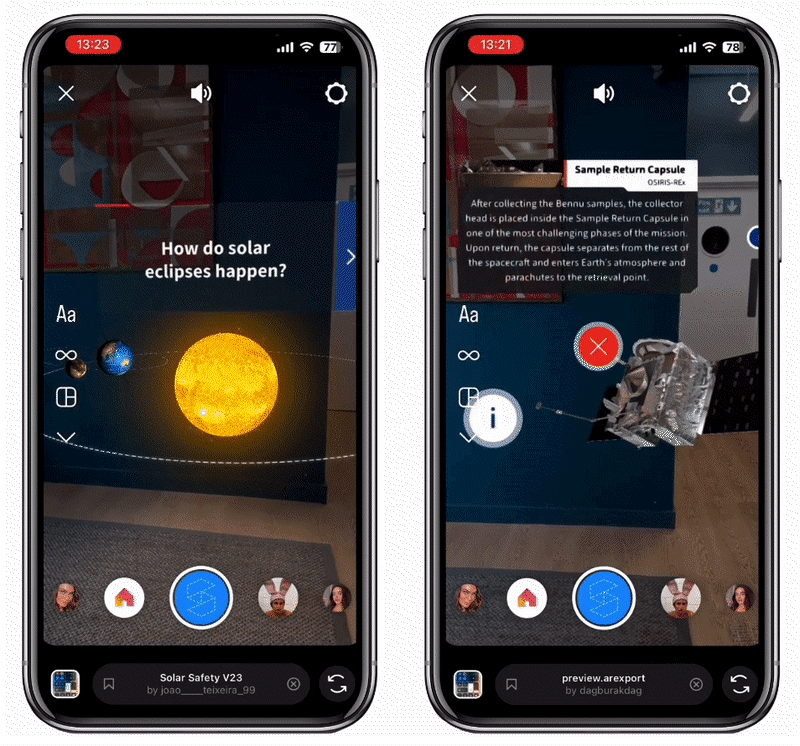 In collaboration with NASA, we expanded upon the space center's primary missions and areas of research. Users are provided with opportunities to comprehend the mechanics behind solar eclipses and learn safety protocols for observing them. They can also embark on explorations of the asteroid Bennu and the OSIRIS-REx satellite, which conducted surface scans upon its discovery. Additionally, users can delve into the forthcoming Artemis II lunar mission, where the firsthand account of an astronaut details the journey that will witness the first woman and person of color landing on the moon.